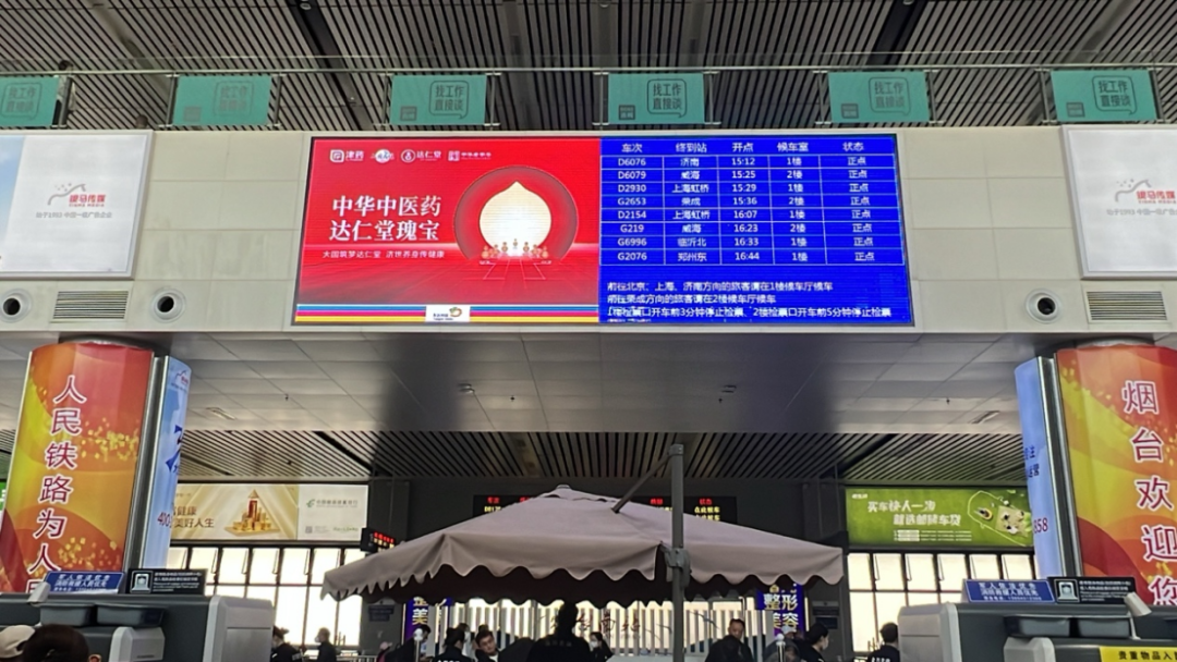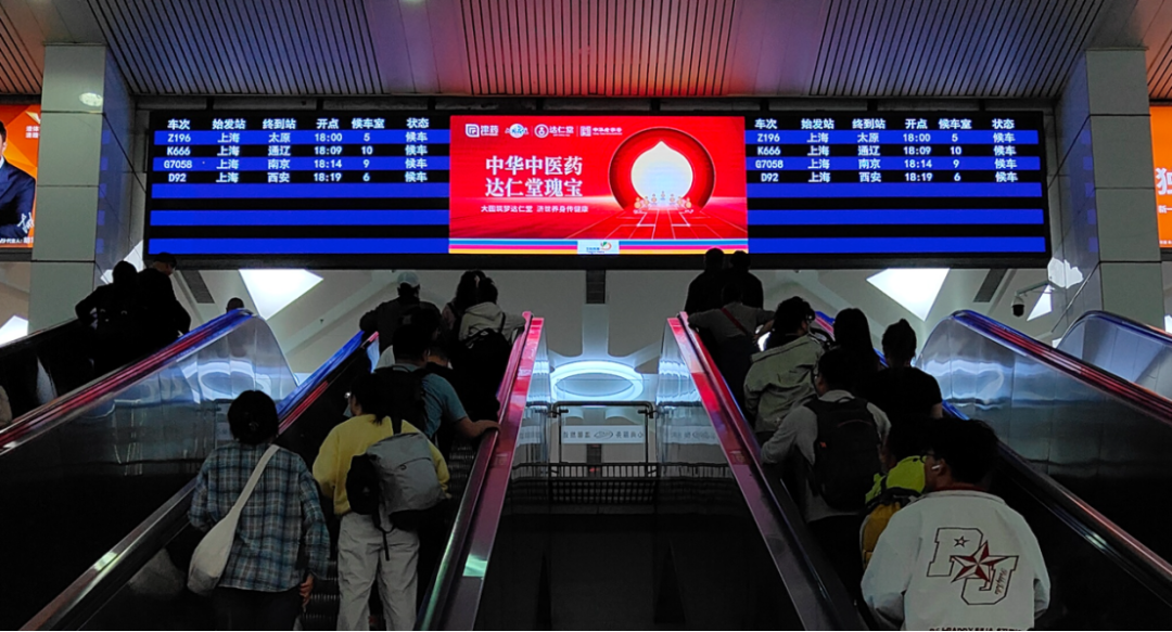 达仁堂品牌形象同步亮相山东、四川、湖南、广东、长三角等全国17个重点省市地区主要高铁站厅,精彩霸屏,向亿万消费者传递达仁堂品牌内涵和价值观。
